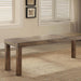 Bring the countryside into your dining space with this rustic masterpiece. The bench offers added details that is similar to the dining table. Split-wood textured top with natural cracks give this bench a natural appearance.