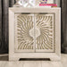 View full detailsThis night stand is a definite showstopper. An etched wooden sunburst pattern serves as the focus, grabbing everyone's attention. What keeps the fl...